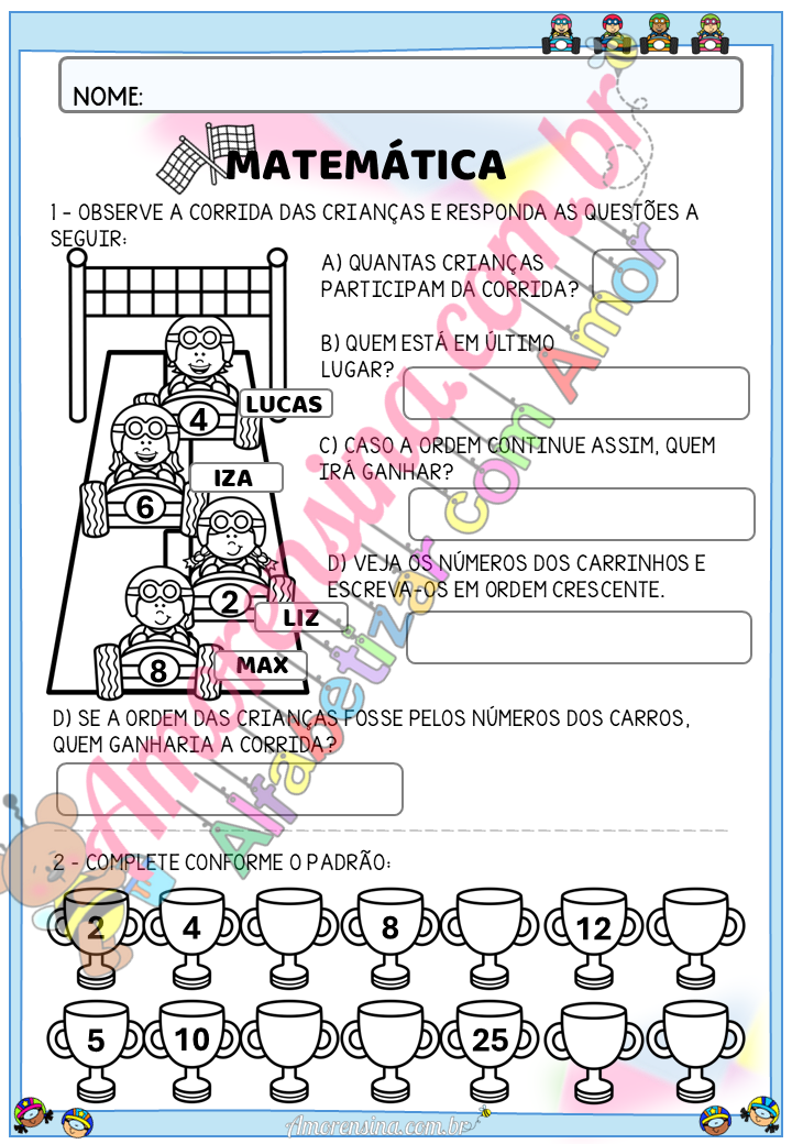 O Na Pista da Matemática 1º Ano é um conjunto de atividades de Matemática contextualizadas com o tema carrinhos de corrida, ideal para tornar as aulas mais atrativas, lúdicas e significativas no início do Ensino Fundamental.